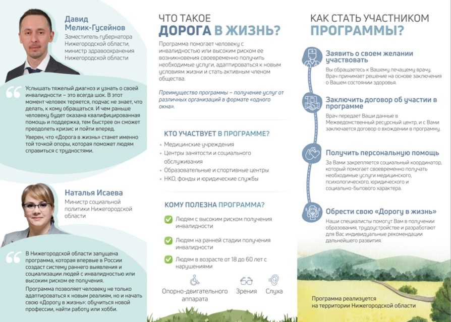 Программа помогает человеку с инвалидностью или высоким риском ее возникновения своевременно получить необходимые услуги, адаптироваться к новым условиям жизни и стать активным членом общества