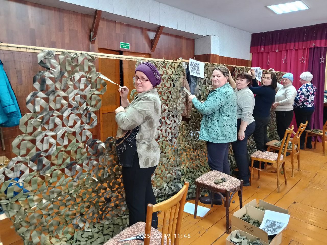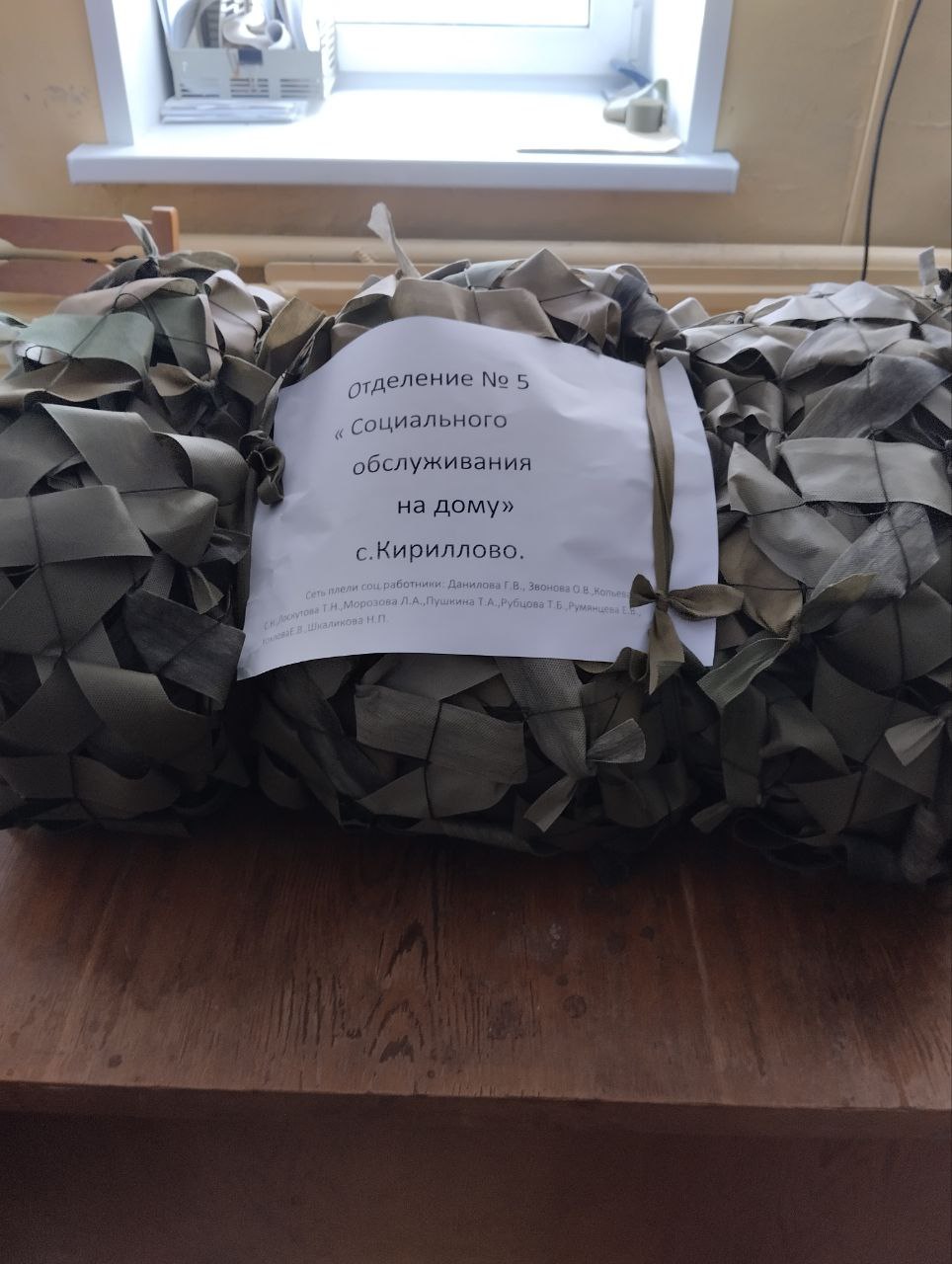 В с. Кириллово социальные работники ГБУ "КЦСОН Краснобаковского муниципального округа" сплели двенадцатую маскировочную сеть для отправки в зону действия СВО