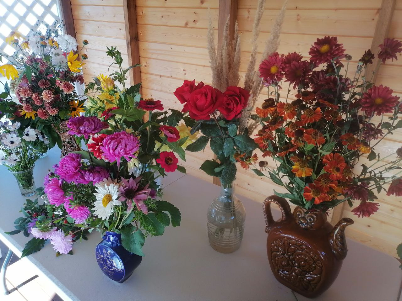 В отделения «Специализированный жилой дом для граждан пожилого возраста и инвалидов» ГБУ "КЦСОН Краснобаковского муниципального округа" с 16 по 19 сентября организована выставка цветов. Как всегда в выставке цветов активное участие приняли не только сотрудники, но и жители, а также соцработники, обслуживающие в отделении граждан пожилого возраста и инвалидов. Все любовались интересными композициями цветов, которые были размещены в прекрасной летней беседке и получили массу приятных эмоций и впечатлений. Хочется поблагодарить всех участников выставки. Желаем жителям и сотрудникам отделения осеннего настроения и душевного тепла!