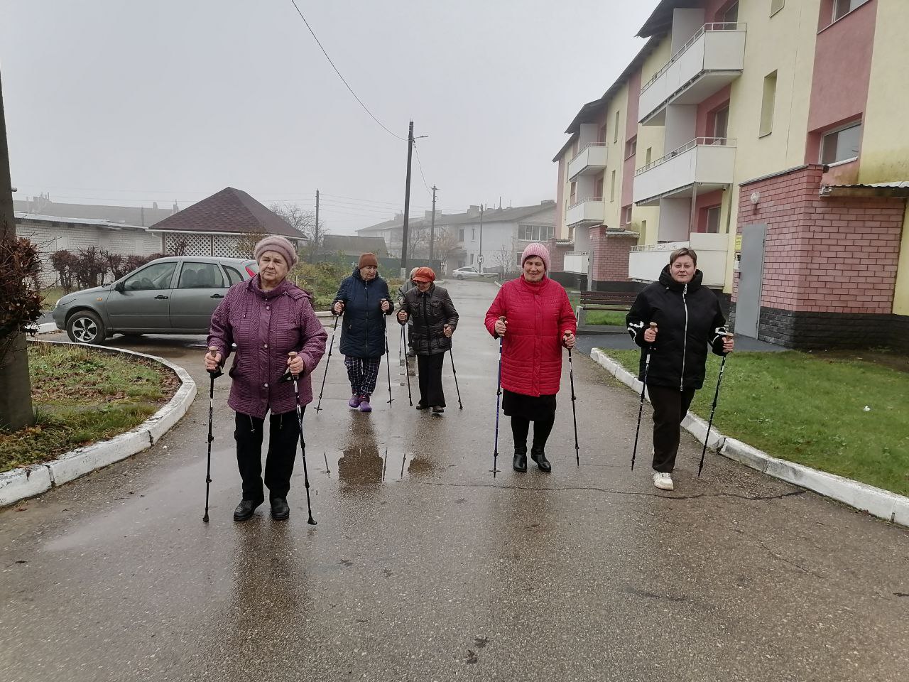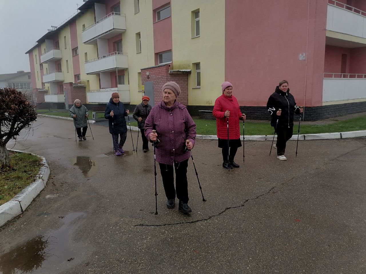 Жители отделения «Специализированный жилой дом для граждан пожилого возраста и инвалидов» ГБУ «КЦСОН Краснобаковского муниципального округа» приняли участие в занятии по скандинавской ходьбе для пожилых с элементами развлекательной игры .