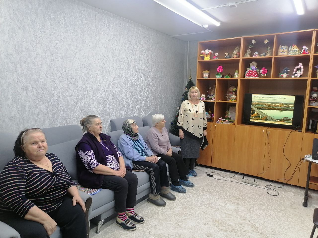 В отделении «Специализированный жилой дом для граждан пожилого возраста и инвалидов» ГБУ "КЦСОН Краснобаковского муниципального округа" состоялся библиотечный час. Сотрудник библиотеки Яшкина А.Ю. провела видео-путешествие по Нижнему Новгороду, которое охватило знаковые места, такие как Кремль, Большая Покровская улица, Чкаловская лестница, набережные (Федоровского, Верхне-Волжская), Собор Александра Невского и Стрелка, а также природные парки (Швейцария) и интересные особняки (Рукавишниковых), предлагая присутствующим погружение в богатую историю, архитектуру и виды на слияние Оки и Волги.