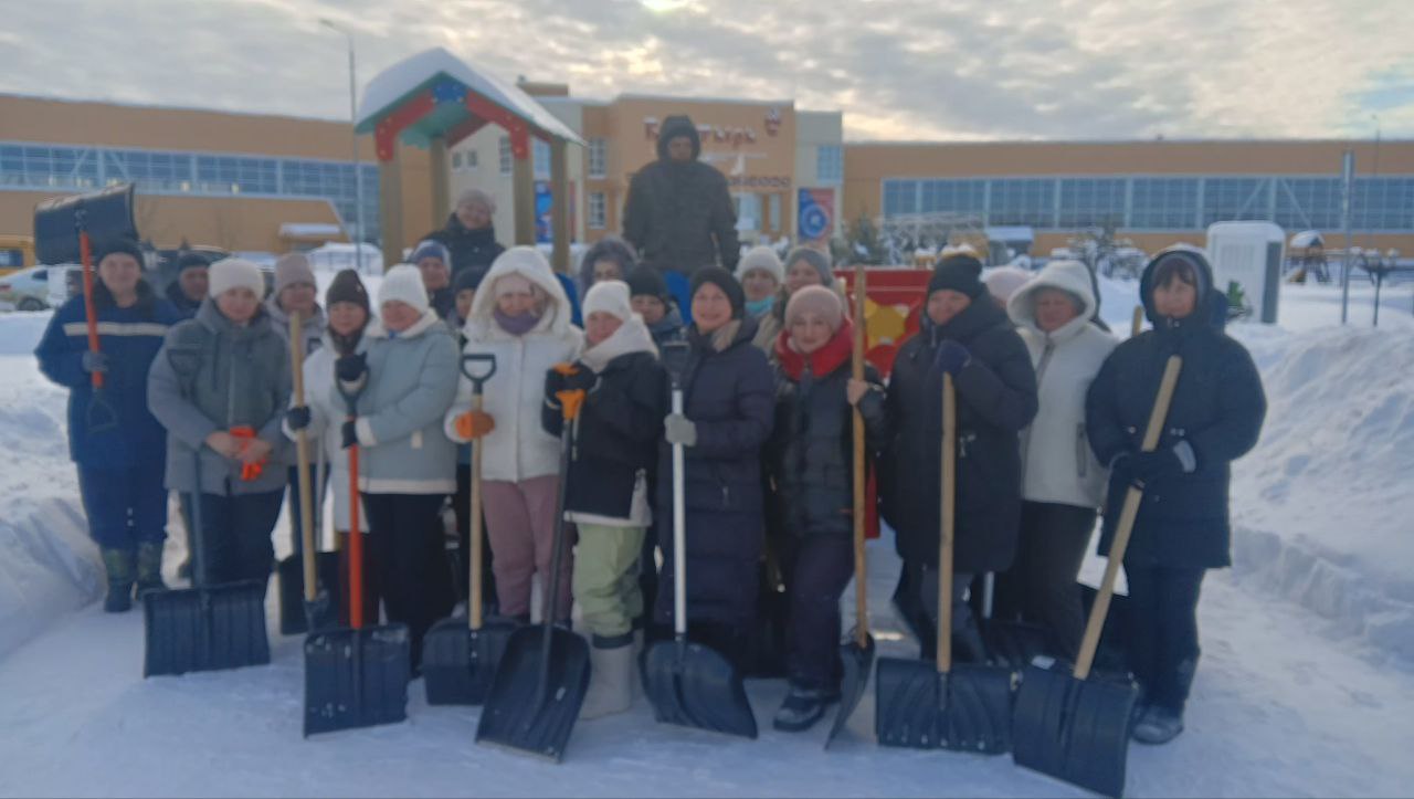 ГБУ "КЦСОН Краснобаковского муниципального округа" приняли участие в субботнике по очистке снега на территории парка Юных Богатырей и детской площадке в рамках проекта "Чистый округ"