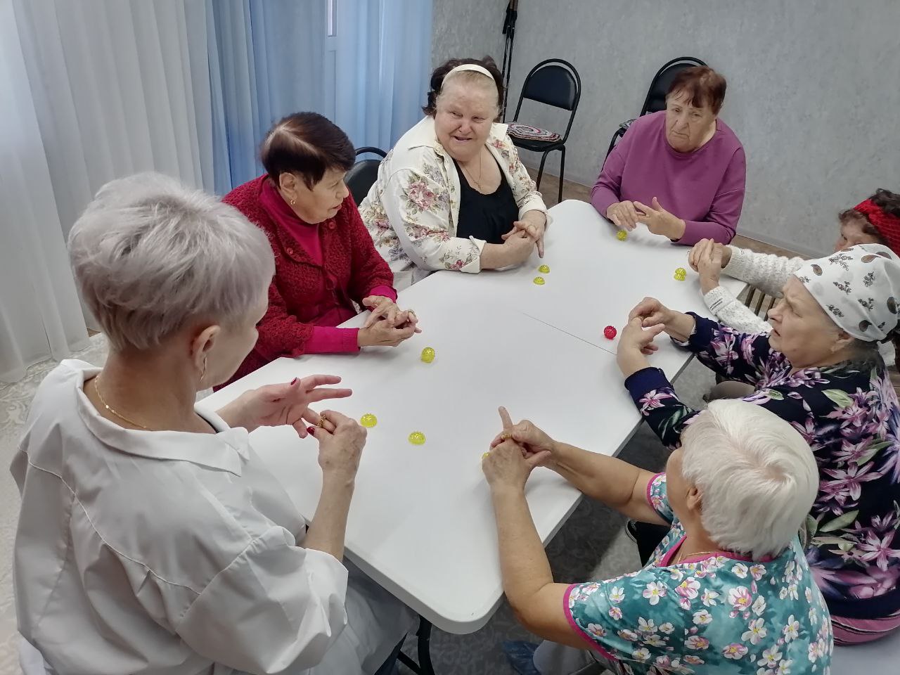 В с. Кириллово социальные работники ГБУ "КЦСОН Краснобаковского муниципального округа" сплели еще одну маскиррвочную сеть для отправки в зону действия СВО