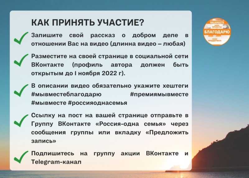 Акция "Благодарю!" для тех, кто получает помощь от волонтеров и неравнодушных людей. Это способ сказать спасибо тем, кто совершает добрые дела. Расскажите, как Вам помогли в жизни и выиграйте призы и подарки от Организаторов Акции.