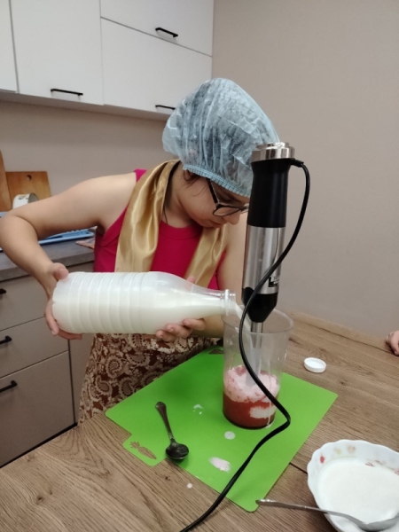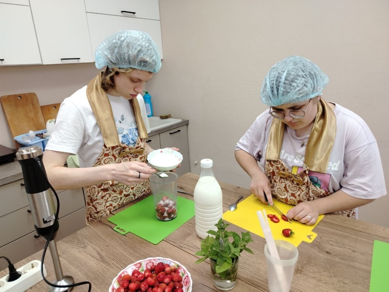 На учебной кухне отделения дневного пребывания прошёл удивительный летний мастер-класс по приготовлению вкуснейшего молочного коктейля!